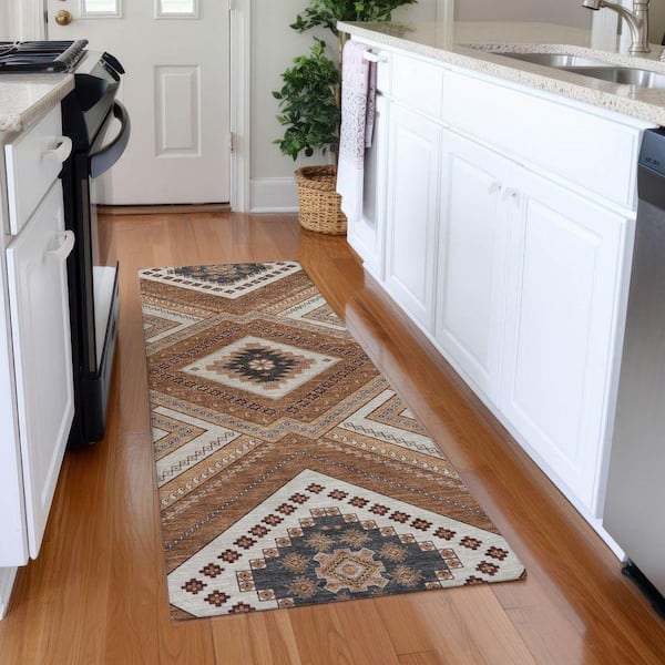 Mayfield Premium Machine Washable Abstract AMF1010 Copper 2 ft. 3 in. x 7 ft. 6 in. Runner Rug