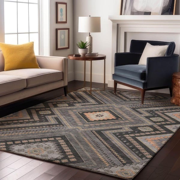 Mayfield Premium Machine Washable Abstract AMF1010 Gray 9 ft. x 12 ft. Area Rug