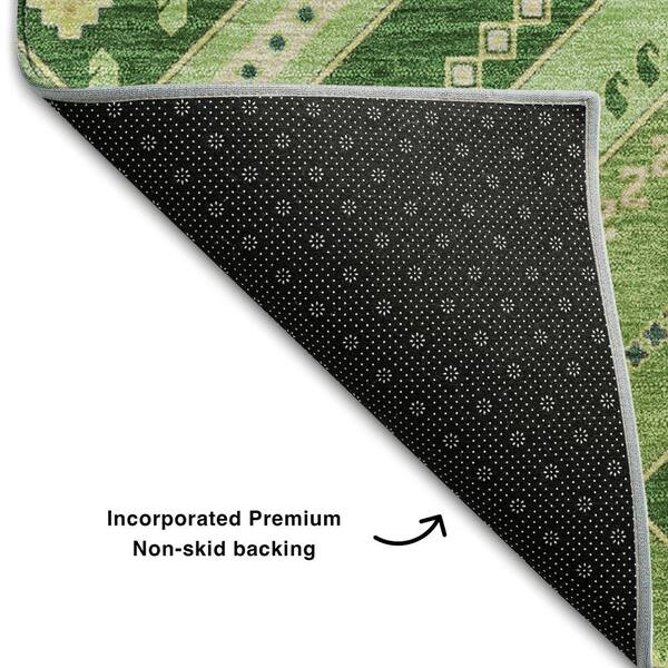 Mayfield Premium Machine Washable Abstract AMF1010 Green 8 ft. x 8 ft. Round Rug