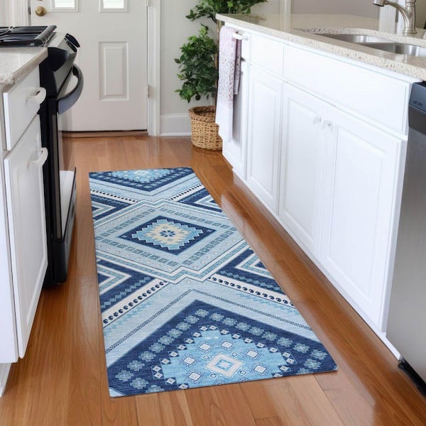 Mayfield Premium Machine Washable Abstract AMF1010 Navy 2 ft. 3 in. x 7 ft. 6 in. Runner Rug