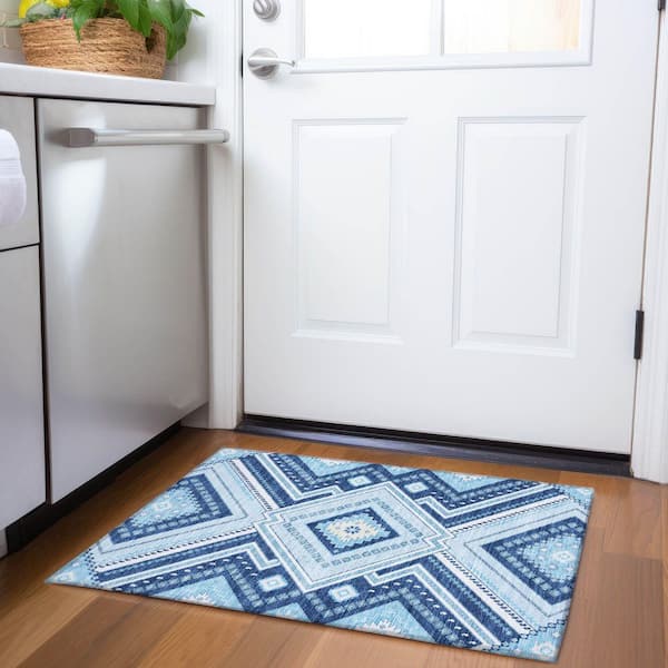 Mayfield Premium Machine Washable Abstract AMF1010 Navy 2 ft. x 3 ft. Area Rug
