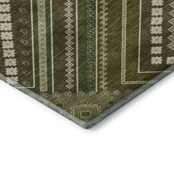 Mayfield Premium Machine Washable Abstract AMF1010 Olive 3 ft. x 5 ft. Area Rug