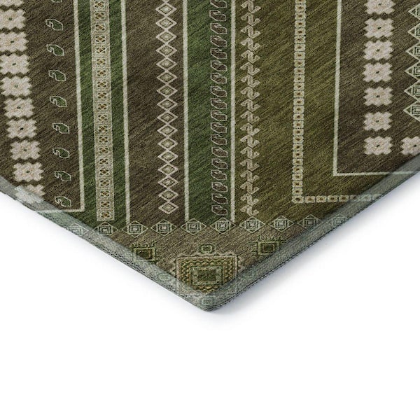 Mayfield Premium Machine Washable Abstract AMF1010 Olive 8 ft. x 10 ft. Area Rug