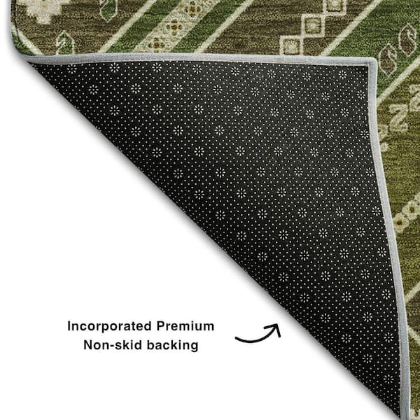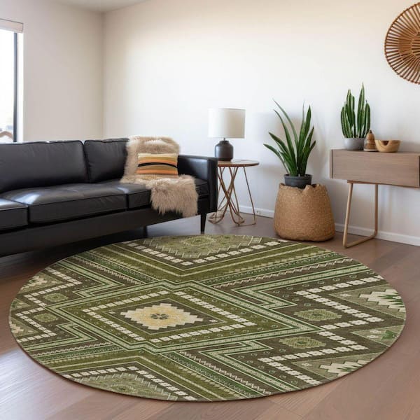 Mayfield Premium Machine Washable Abstract AMF1010 Olive 8 ft. x 8 ft. Round Rug