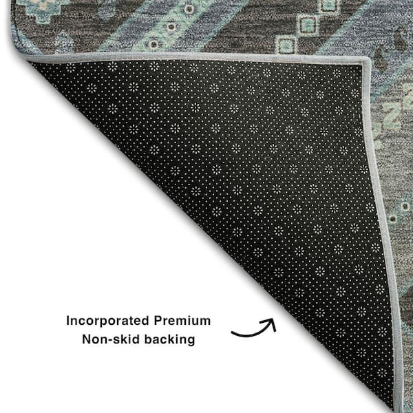 Mayfield Premium Machine Washable Abstract AMF1010 Pewter 8 ft. x 8 ft. Round Rug