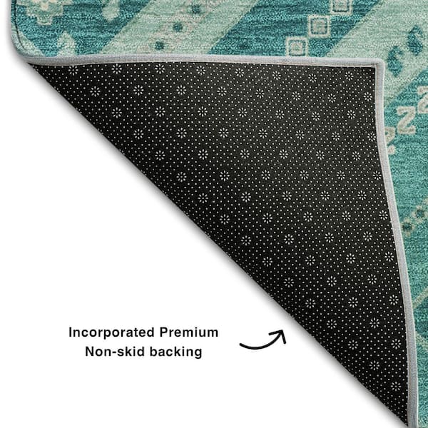 Mayfield Premium Machine Washable Abstract AMF1010 Teal 8 ft. x 8 ft. Round Rug