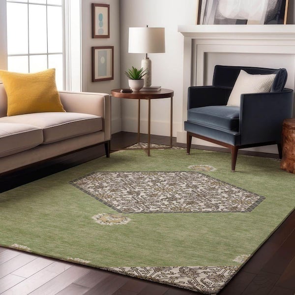 Mayfield Premium Machine Washable Abstract AMF1011 Aloe 10 ft. x 14 ft. Area Rug