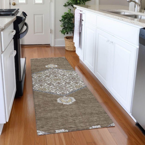 Mayfield Premium Machine Washable Abstract AMF1011 Brown 2 ft. 3 in. x 7 ft. 6 in. Runner Rug