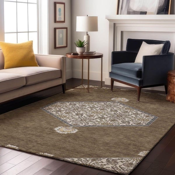 Mayfield Premium Machine Washable Abstract AMF1011 Brown 5 ft. x 7 ft. 6 in. Area Rug