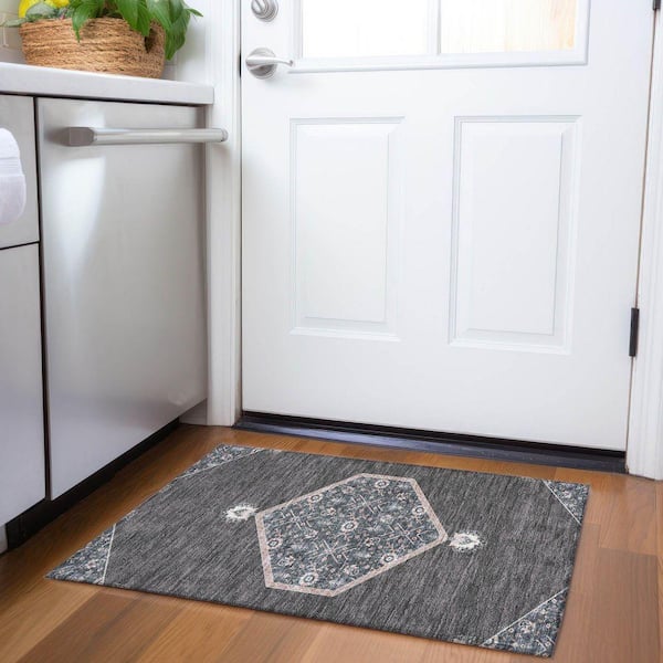 Mayfield Premium Machine Washable Abstract AMF1011 Charcoal 2 ft. x 3 ft. Area Rug