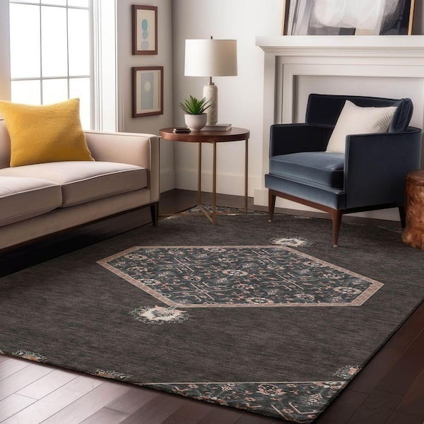 Mayfield Premium Machine Washable Abstract AMF1011 Charcoal 3 ft. x 5 ft. Area Rug