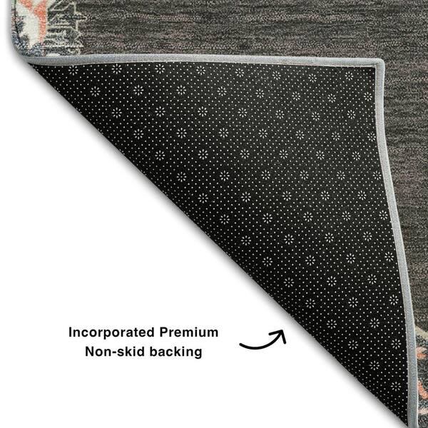 Mayfield Premium Machine Washable Abstract AMF1011 Charcoal 8 ft. x 8 ft. Round Rug