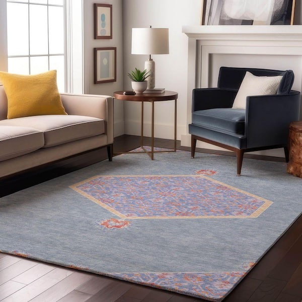 Mayfield Premium Machine Washable Abstract AMF1011 Denim 10 ft. x 14 ft. Area Rug