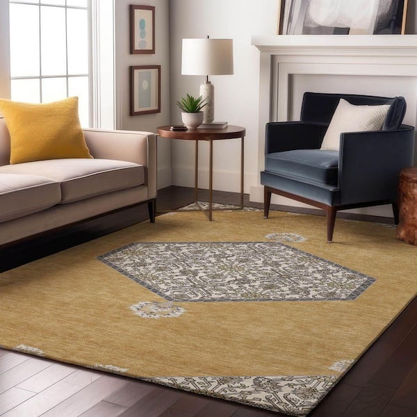 Mayfield Premium Machine Washable Abstract AMF1011 Gold 3 ft. x 5 ft. Area Rug