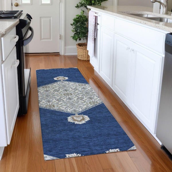 Mayfield Premium Machine Washable Abstract AMF1011 Navy 2 ft. 3 in. x 7 ft. 6 in. Runner Rug