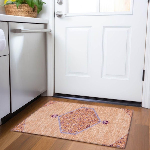 Mayfield Premium Machine Washable Abstract AMF1011 Peach 2 ft. x 3 ft. Area Rug