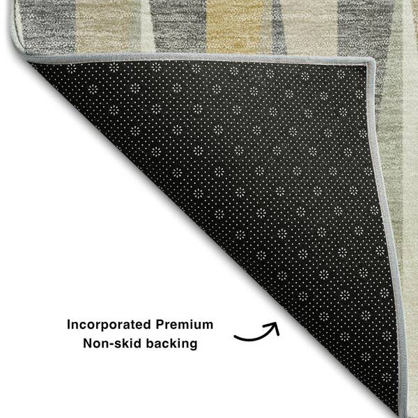 Mayfield Premium Machine Washable Abstract AMF1012 Beige 8 ft. x 8 ft. Round Rug