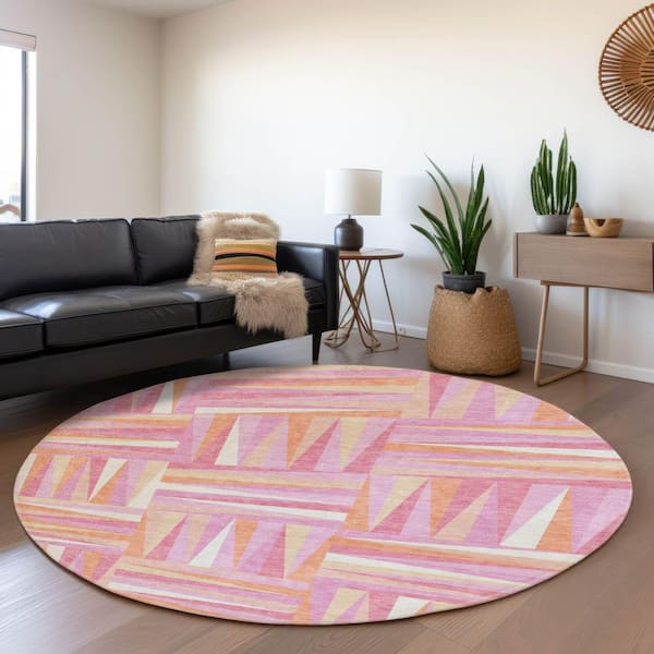 Mayfield Premium Machine Washable Abstract AMF1012 Blush 8 ft. x 8 ft. Round Rug