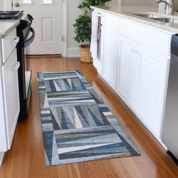 Mayfield Premium Machine Washable Abstract AMF1012 Denim 2 ft. 3 in. x 7 ft. 6 in. Runner Rug