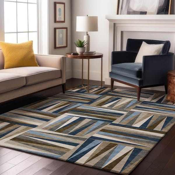 Mayfield Premium Machine Washable Abstract AMF1012 Navy 5 ft. x 7 ft. 6 in. Area Rug