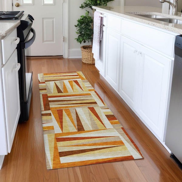Mayfield Premium Machine Washable Abstract AMF1012 Orange 2 ft. 3 in. x 7 ft. 6 in. Runner Rug