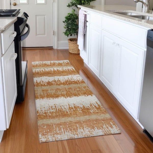 Mayfield Premium Machine Washable Abstract AMF1013 Copper 2 ft. 3 in. x 7 ft. 6 in. Runner Rug
