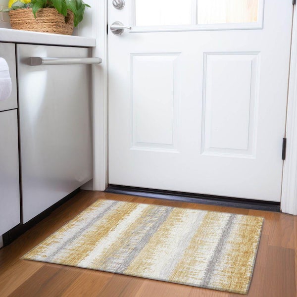 Mayfield Premium Machine Washable Abstract AMF1013 Gold 2 ft. x 3 ft. Area Rug