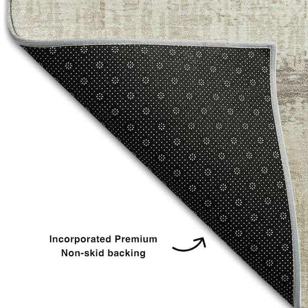 Mayfield Premium Machine Washable Abstract AMF1013 Ivory 8 ft. x 8 ft. Round Rug