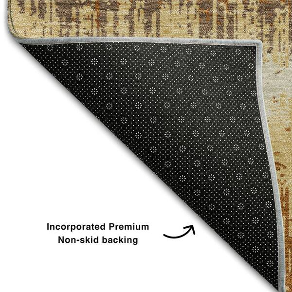 Mayfield Premium Machine Washable Abstract AMF1013 Mocha 8 ft. x 8 ft. Round Rug