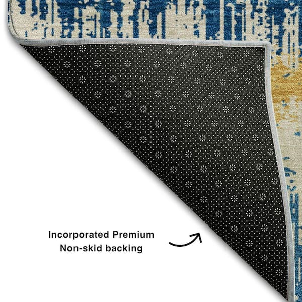 Mayfield Premium Machine Washable Abstract AMF1013 Navy 8 ft. x 8 ft. Round Rug