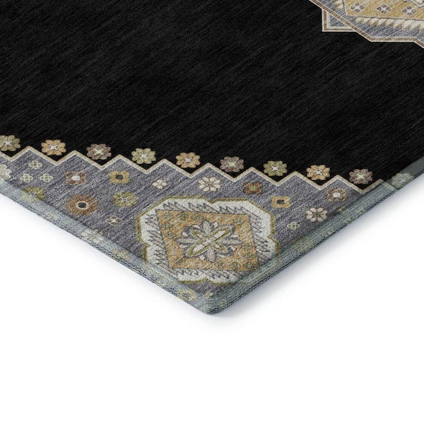 Mayfield Premium Machine Washable Abstract AMF1014 Black 5 ft. x 7 ft. 6 in. Area Rug