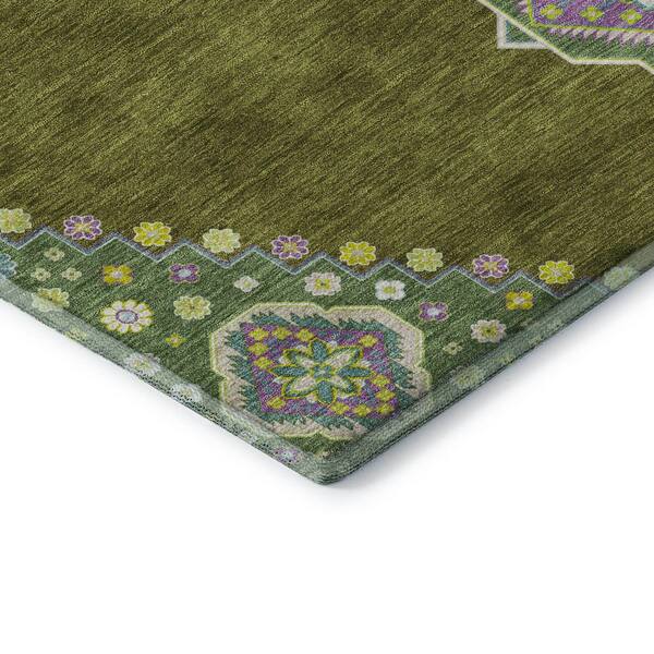 Mayfield Premium Machine Washable Abstract AMF1014 Olive 3 ft. x 4 ft. Area Rug