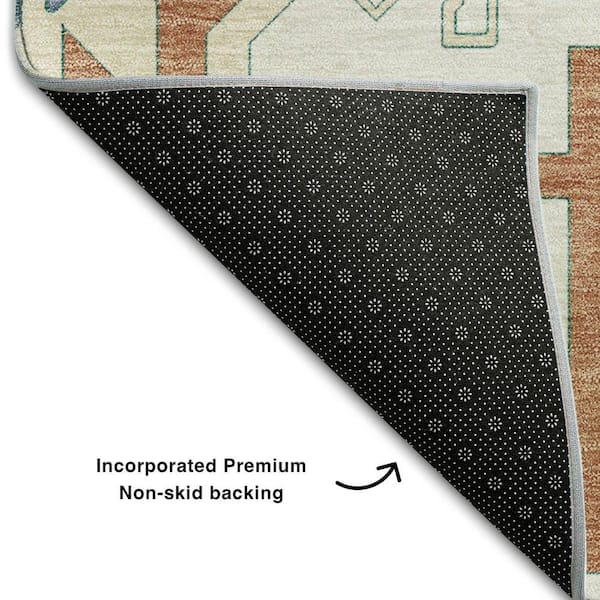 Mayfield Premium Machine Washable Abstract AMF1015 Ivory 8 ft. x 8 ft. Round Rug