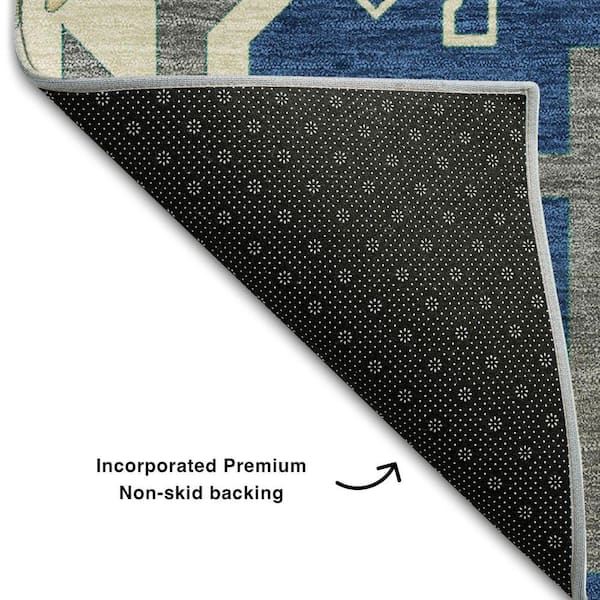 Mayfield Premium Machine Washable Abstract AMF1015 Navy 8 ft. x 8 ft. Round Rug