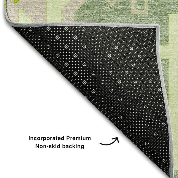 Mayfield Premium Machine Washable Abstract AMF1015 Sage 8 ft. x 8 ft. Round Rug