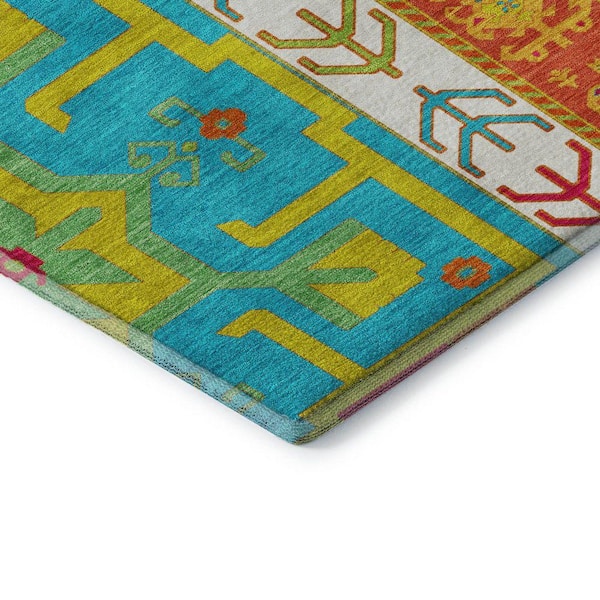 Mayfield Premium Machine Washable Abstract AMF1015 Teal 3 ft. x 5 ft. Area Rug