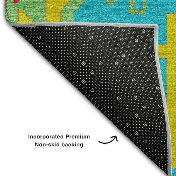 Mayfield Premium Machine Washable Abstract AMF1015 Teal 8 ft. x 8 ft. Round Rug