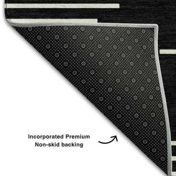 Mayfield Premium Machine Washable Abstract AMF1016 Black 8 ft. x 8 ft. Round Rug