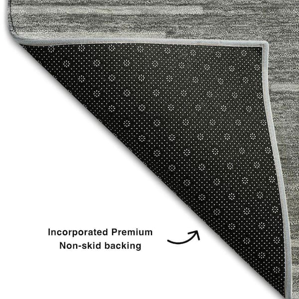 Mayfield Premium Machine Washable Abstract AMF1016 Charcoal 8 ft. x 8 ft. Round Rug