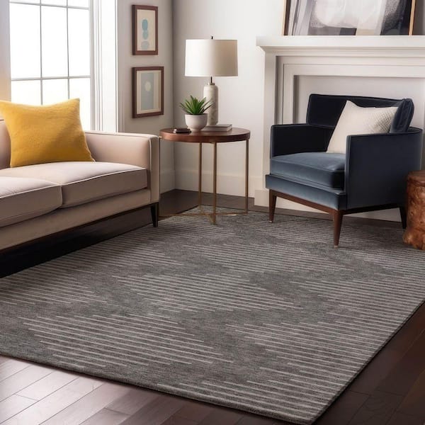 Mayfield Premium Machine Washable Abstract AMF1016 Charcoal 9 ft. x 12 ft. Area Rug
