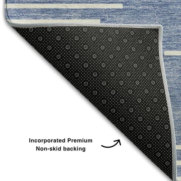 Mayfield Premium Machine Washable Abstract AMF1016 Denim 8 ft. x 8 ft. Round Rug