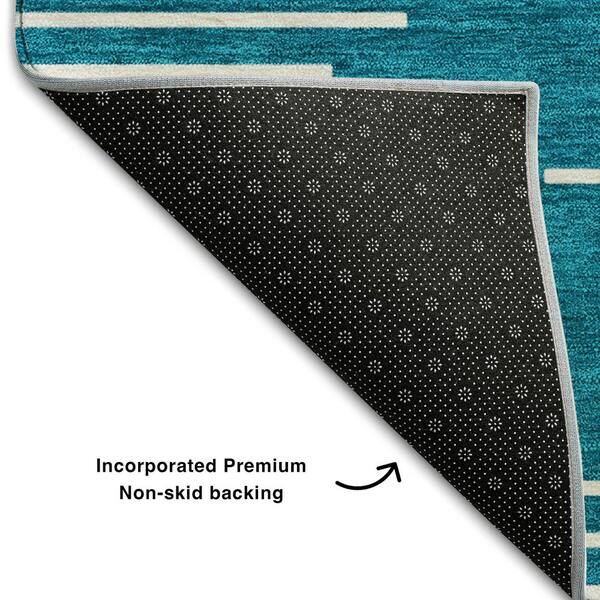 Mayfield Premium Machine Washable Abstract AMF1016 Teal 8 ft. x 8 ft. Round Rug
