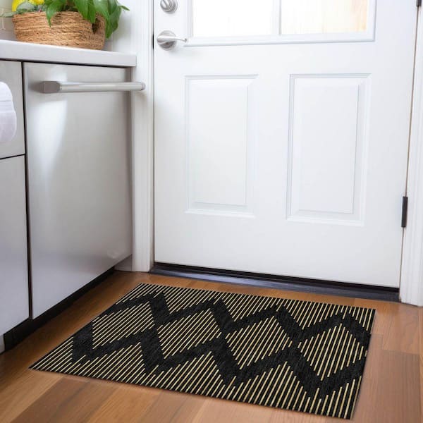 Mayfield Premium Machine Washable Abstract AMF1017 Black 2 ft. x 3 ft. Area Rug