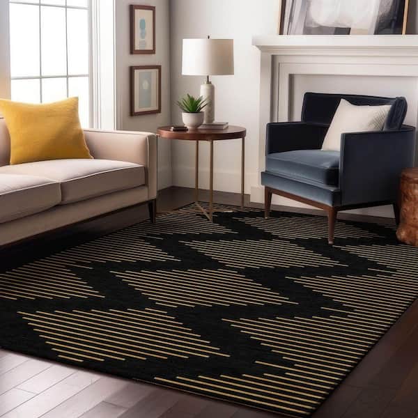 Mayfield Premium Machine Washable Abstract AMF1017 Black 8 ft. x 10 ft. Area Rug