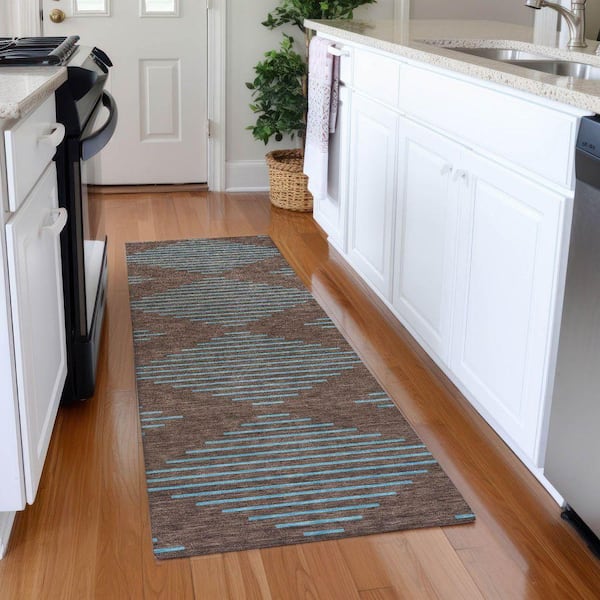 Mayfield Premium Machine Washable Abstract AMF1017 Brown 2 ft. 3 in. x 7 ft. 6 in. Runner Rug