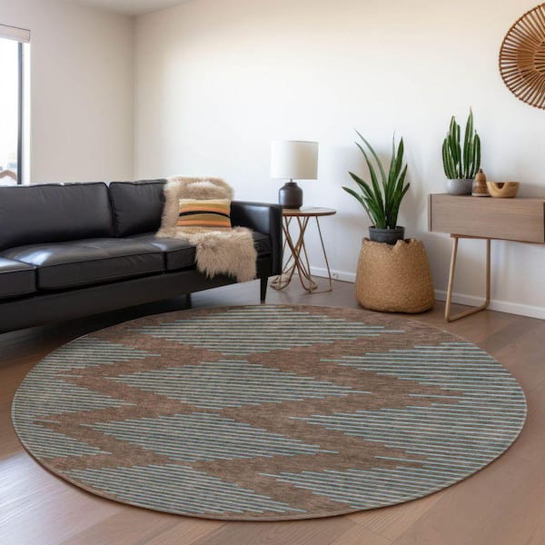 Mayfield Premium Machine Washable Abstract AMF1017 Brown 8 ft. x 8 ft. Round Rug