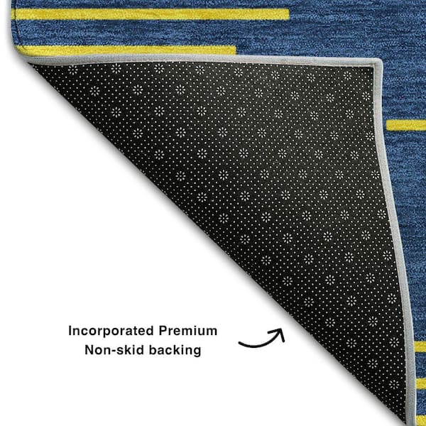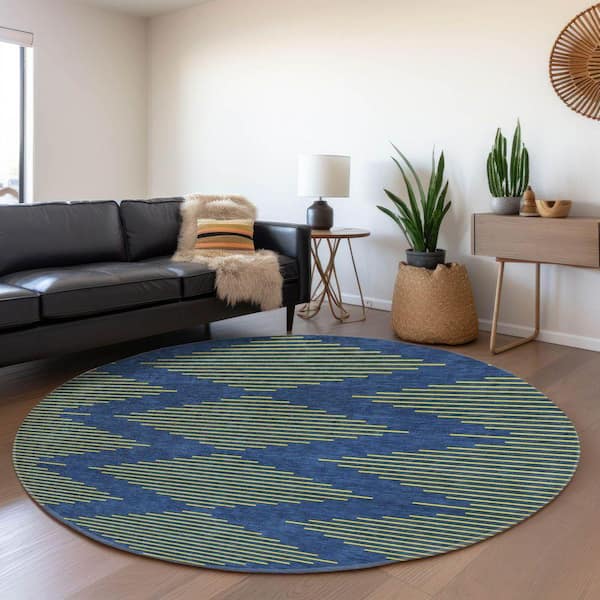 Mayfield Premium Machine Washable Abstract AMF1017 Navy 8 ft. x 8 ft. Round Rug