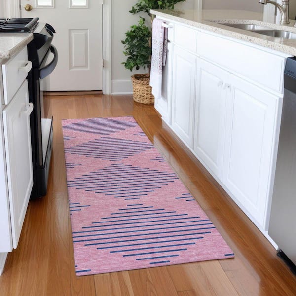 Mayfield Premium Machine Washable Abstract AMF1017 Pink 2 ft. 3 in. x 7 ft. 6 in. Runner Rug