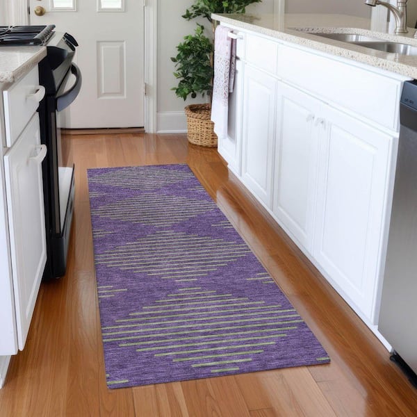Mayfield Premium Machine Washable Abstract AMF1017 Purple 2 ft. 3 in. x 7 ft. 6 in. Runner Rug