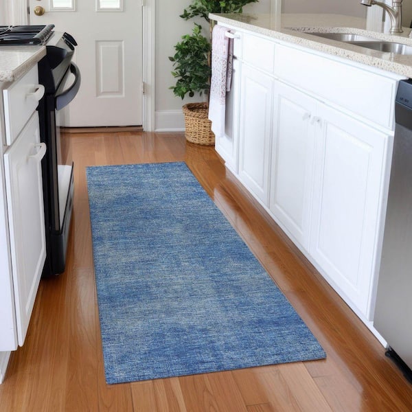 Mayfield Premium Machine Washable Abstract AMF1018 Blue 2 ft. 3 in. x 7 ft. 6 in. Runner Rug